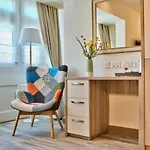 Mobiliados com mesa de trabalho, os 6 quartos incluem comodidades como Internet de banda larga e TV de tela plana com canais via satélite, bem como máquinas de café/chá. Algumas unidades apresentam casas de banho privadas com secador de cabelo e produtos de higiene.